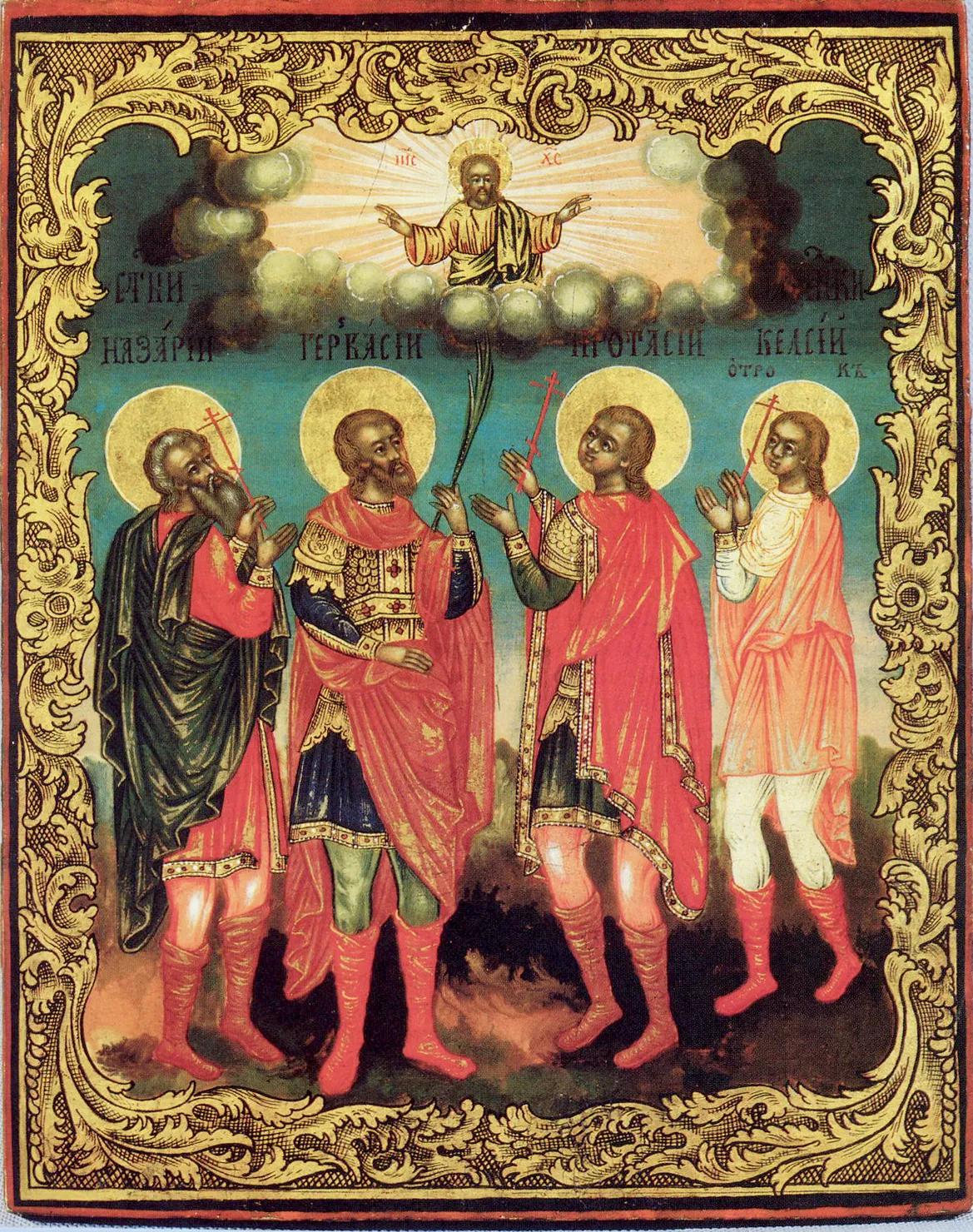 - Мчч. Наза́рия, Герва́сия, Прота́сия и Ке́лсия (54–68)
