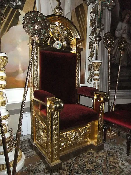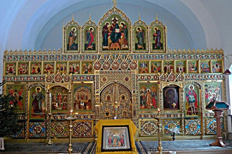 Иконостас для Рождества Богородицы Свято-Пафнутьева Борововского монастыря выполнен в технике резьбы по дереву с отделкой басмой