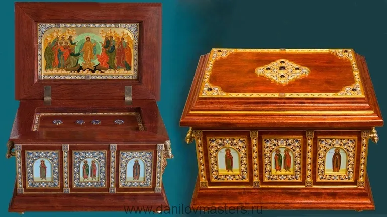 Во многих храмах святые мощи хранятся в ковчегах, выполненных даниловскими мастерами-резчиками совместно с ювелирной мастерской. Деревянная основа ковчегов, выточенных из ценных пород дерева, украшается ювелирными элементами из серебряного литья, филигранью, финифтью, камнями. Также ювелиры дополняют накладками из басмы, камнями, другими декоративными элементами киоты для икон, архиерейские посохи и жезлы из дерева и евхаристические наборы, превращая их в изысканные художественные произведения.