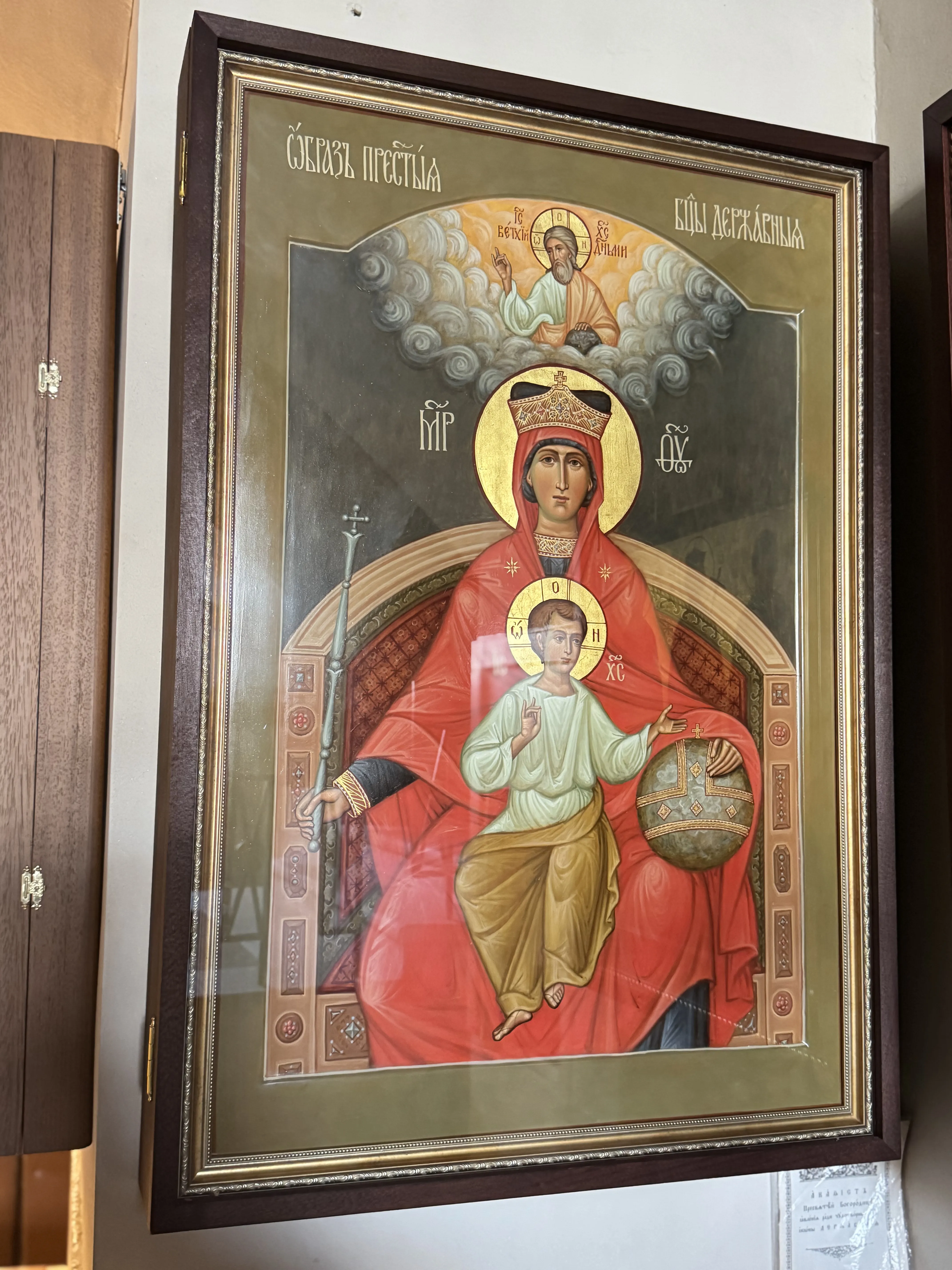 Явление Державной иконы Божией Матери произошло 2/15 марта 1917 года — в день отречения императора Николая II — в селе Коломенском под Москвой. Крестьянке Евдокии Адриановой в трех сновидениях было открыто о забытом образе Богородицы, который после обретения в подвале Вознесенской церкви явил Царицу Небесную, сидящую на троне со скипетром и державой в руках, в короне и красной порфире. Это указало на то, что Владычица принимает на Себя особое попечение о русском народе. Слух о чудотворной иконе быстро распространился; служба и акафист к ней были составлены при участии патриарха Тихона. Ныне образ пребывает в храме Казанской иконы Божией Матери в Коломенском, куда был возвращен в 1990 году.