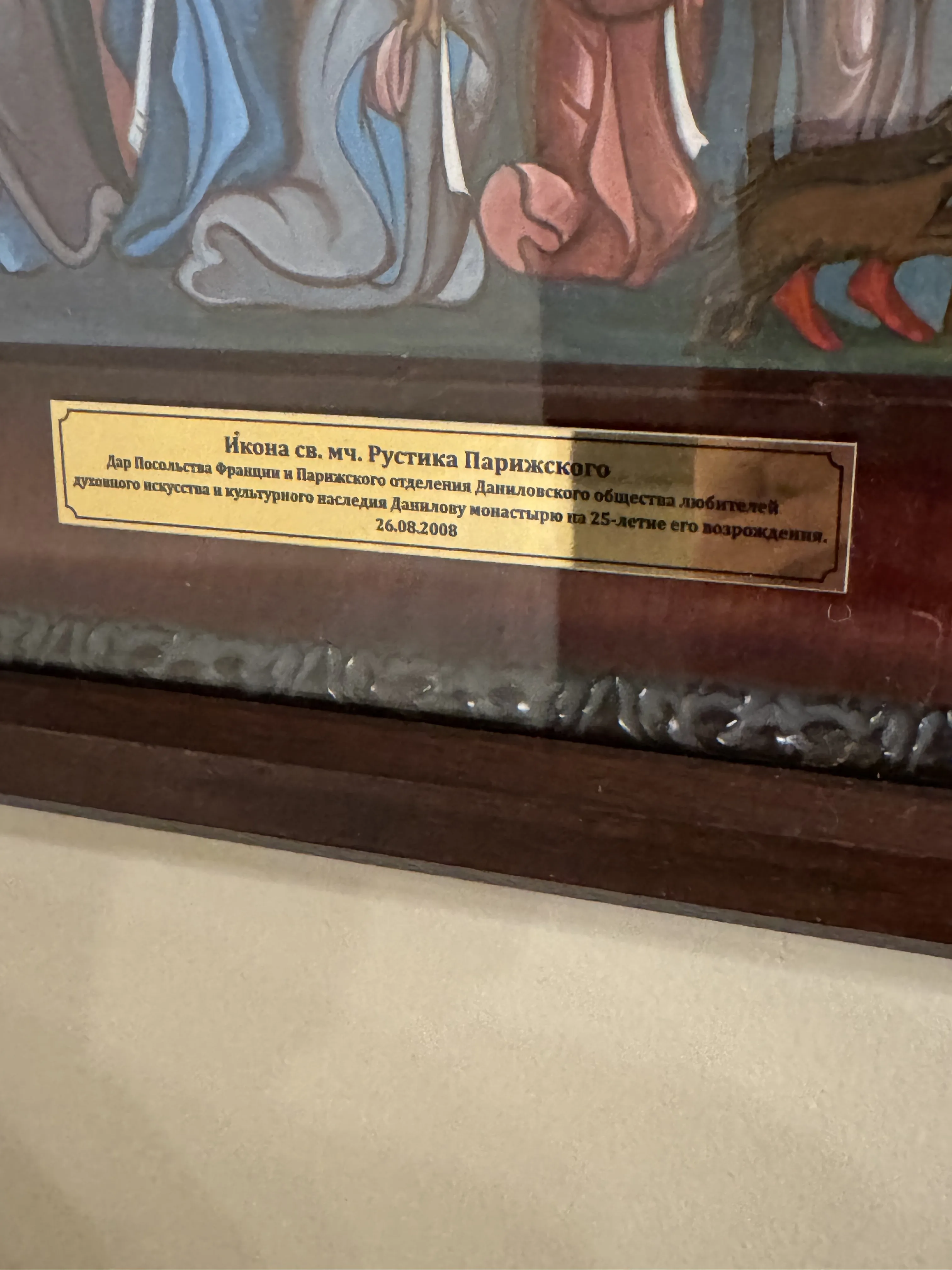 Икона является даром Посольства Франции и Парижского отделения Даниловского общества любителей духовного искусства и культурного наследия Данилову монастырю на 25-летие его возрождения.