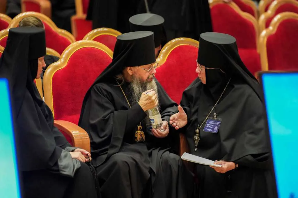 Места в президиуме заседания заняли: Святейший Патриарх Московский и всея Руси Кирилл; управляющий делами Московской Патриархии, наместник Новоспасского ставропигиального мужского монастыря Москвы митрополит Воскресенский Дионисий; председатель Синодального отдела по монастырям и монашеству, наместник Донского ставропигиального мужского монастыря Москвы митрополит Каширский Феогност; председатель Комиссии по организации жизни монастырей и монашества Межсоборного присутствия Русской Православной Церкви митрополит Нижегородский и Арзамасский Георгий; заместитель председателя Синодального отдела по монастырям и монашеству, настоятельница Зачатьевского ставропигиального женского монастыря Москвы игумения Иулиания (Каледа).