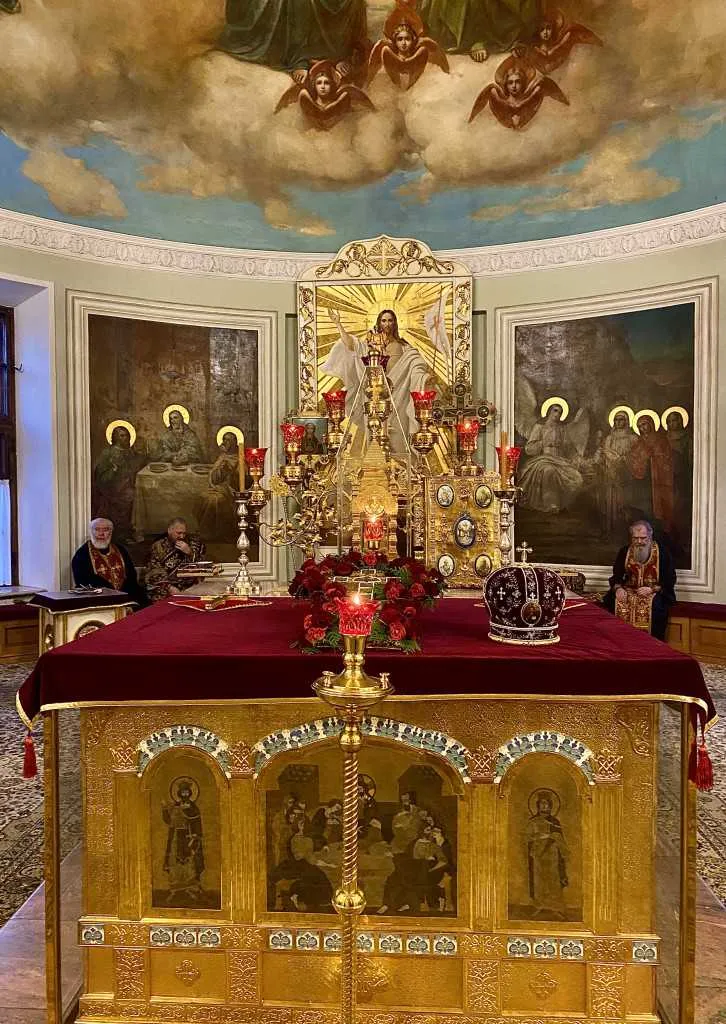 В самый день праздника наместник Даниловой обители возглавил позднюю Божественную Литургию в Троицком соборе. Его Преосвященству сослужили братия монастыря в священном сане.