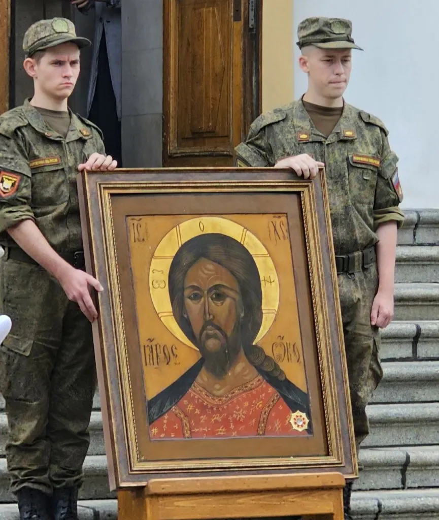 Символом Кантемировской дивизии станет оплечная икона Иисуса Христа "Спас Ярое око", а в медицинский отряд специального назначения Добровольческого корпуса передадут икону святого великомученика и целителя Пантелеимона.