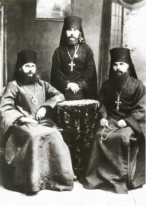 5. Слева направо: епископ Феодор (Поздеевский), иеромонах Герасим (Садковский), архимандрит Герман (Ряшенцев). 1916 г., Сергиев Посад